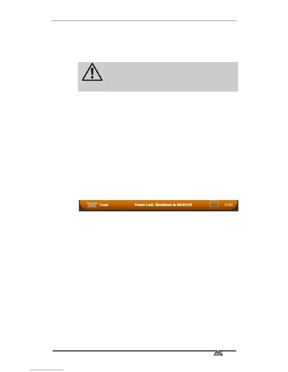 In case of power loss, the toolbar at the top of the screen will turn