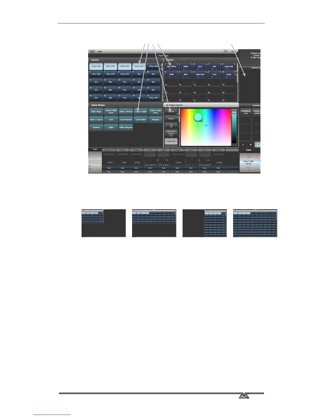 You select which workspace windows you want to see using the
