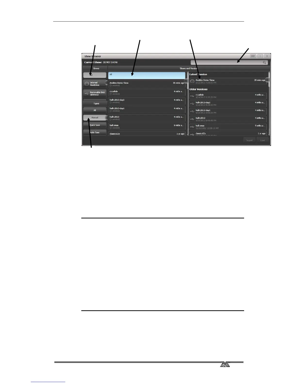 right you can see different versions of the showfile; this allows you to