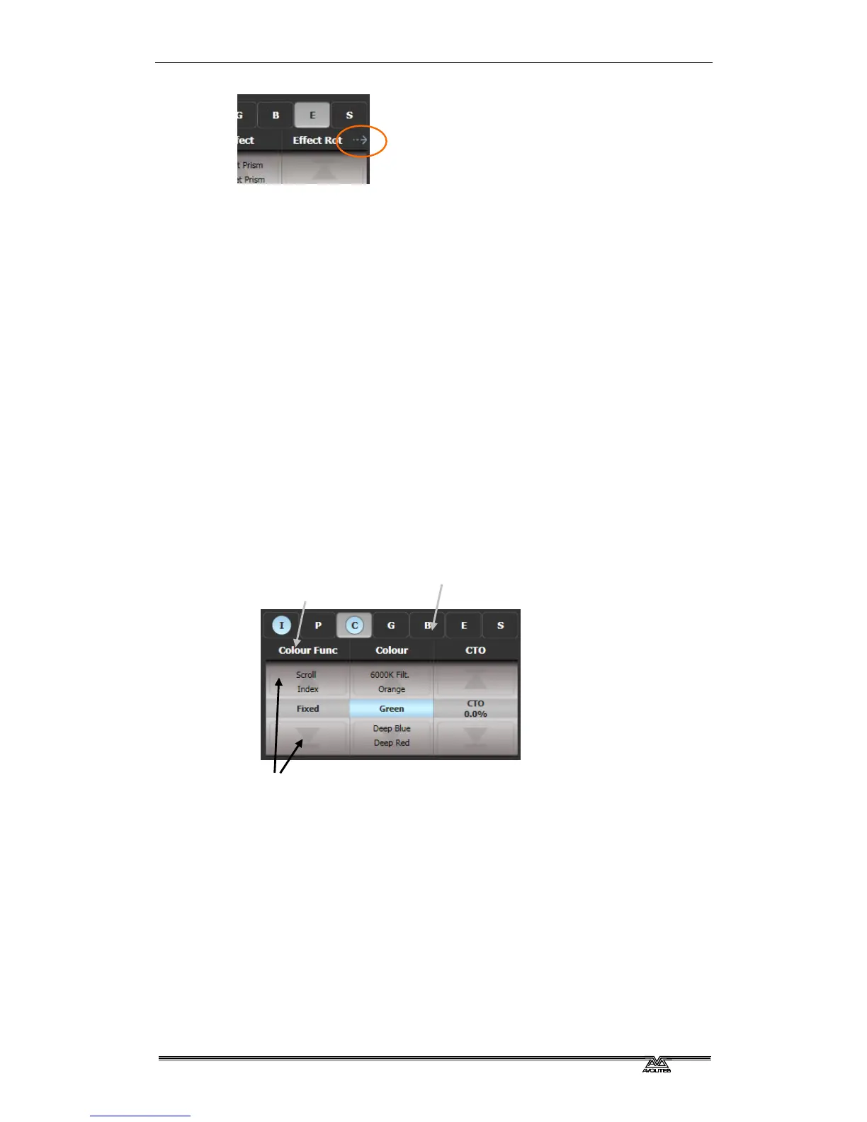 the wheels. It also offers a colour picker window for fixtures with RGB