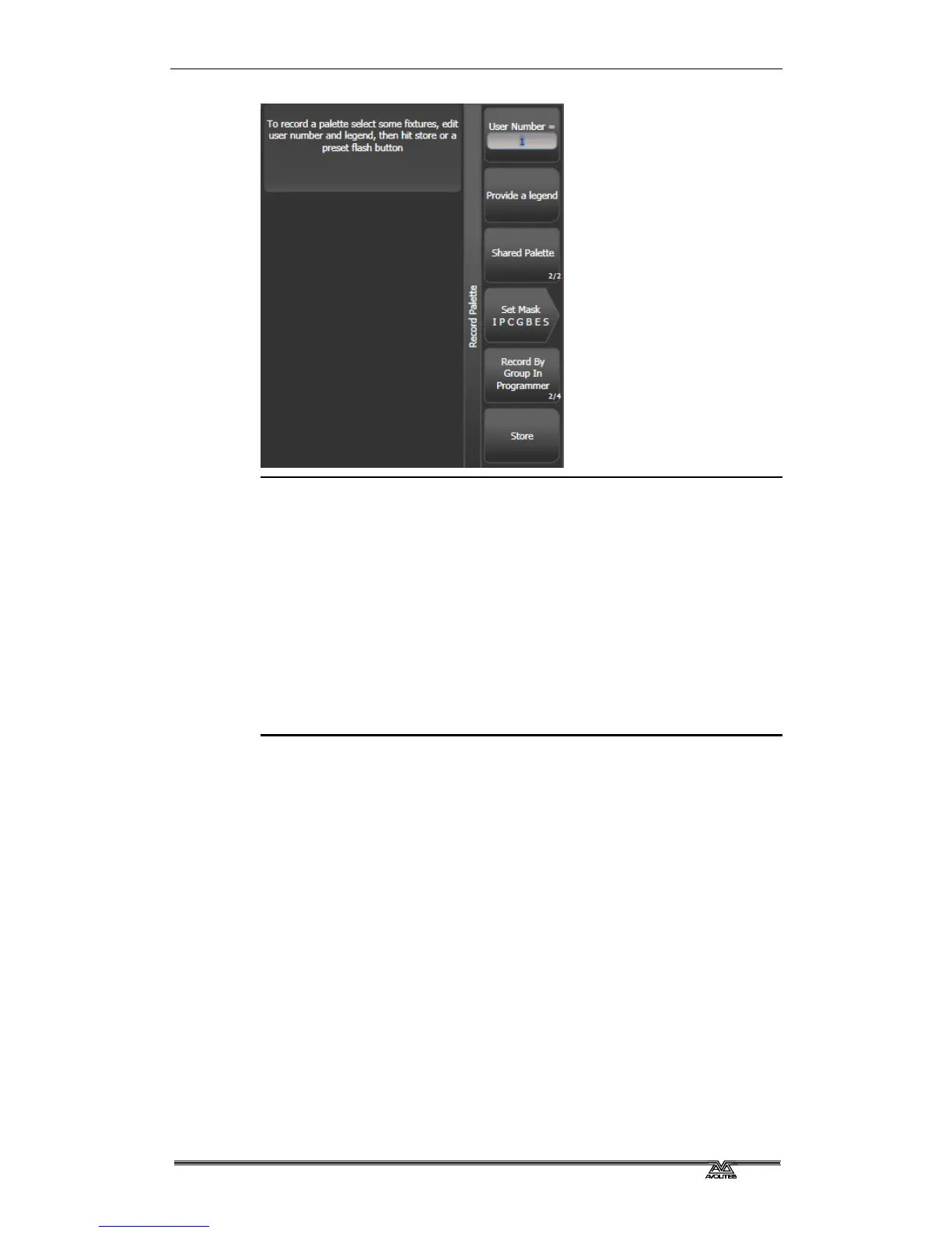 2> Select the fixtures for which you want to store palette values.