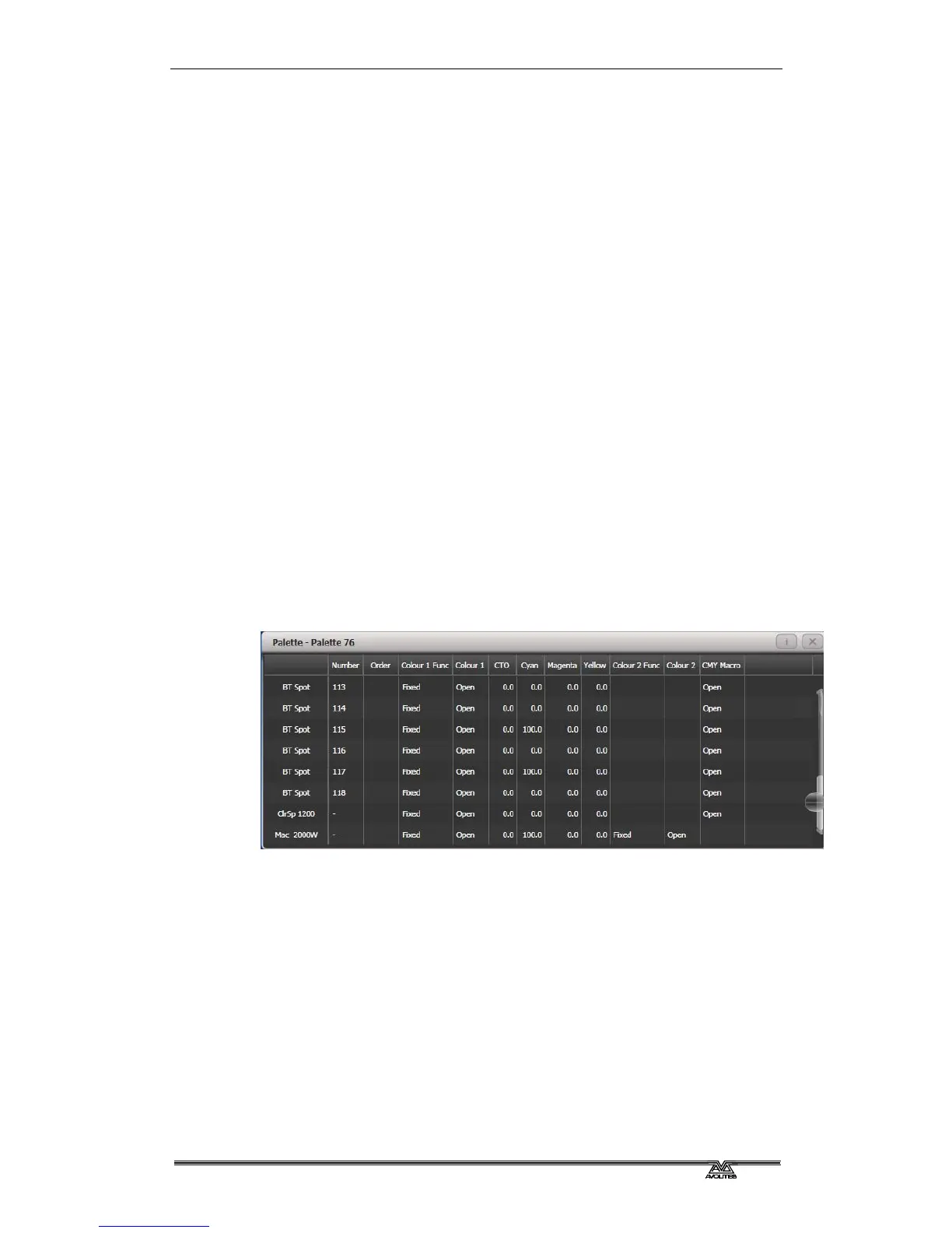 programmed for your MAC 2000’s, pressing one of the palettes when