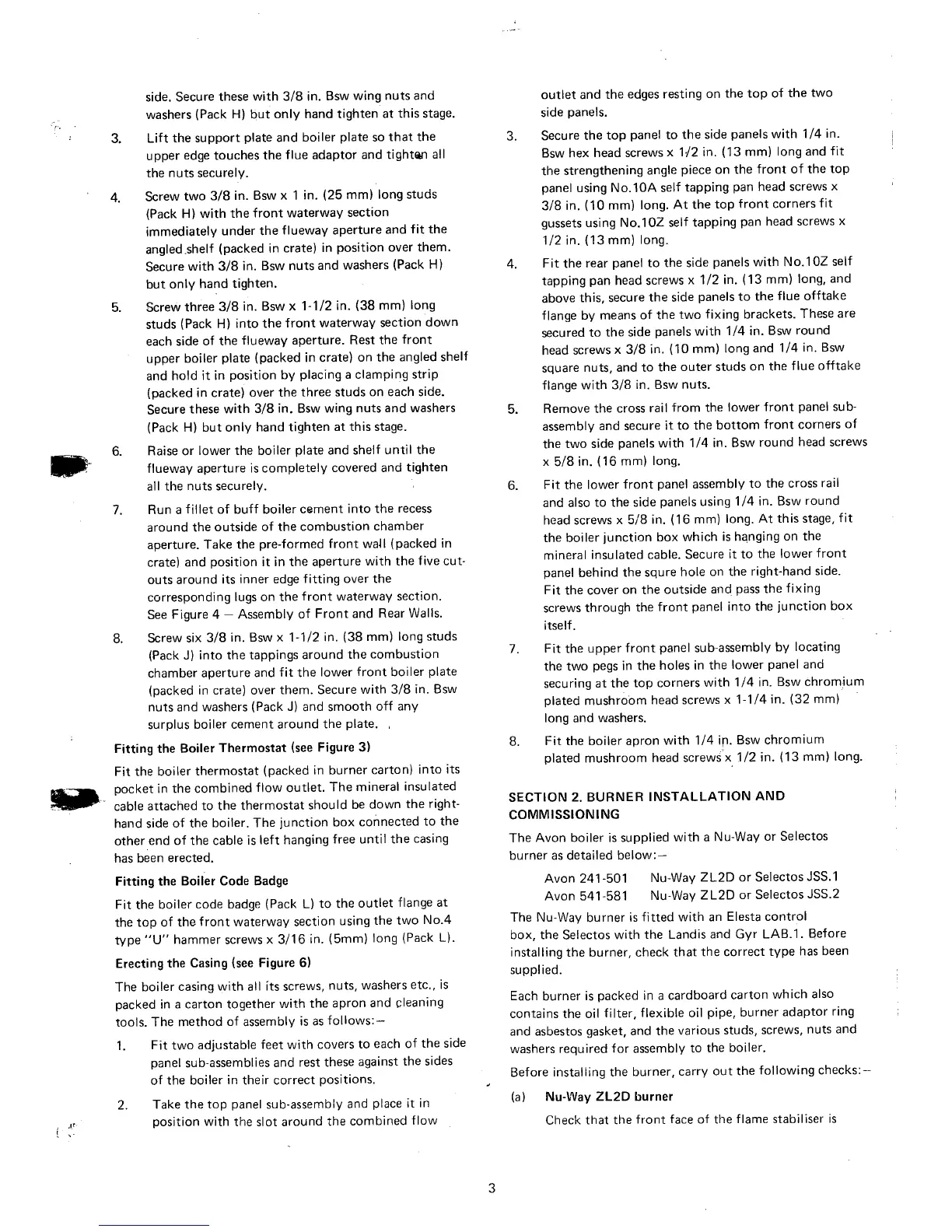 Avon One - Fitting the Boiler Thermostat; Fitting the Boiler Code Badge; Erecting the Casing; SECTION 2. BURNER INSTALLATION AND COMMISSIONING