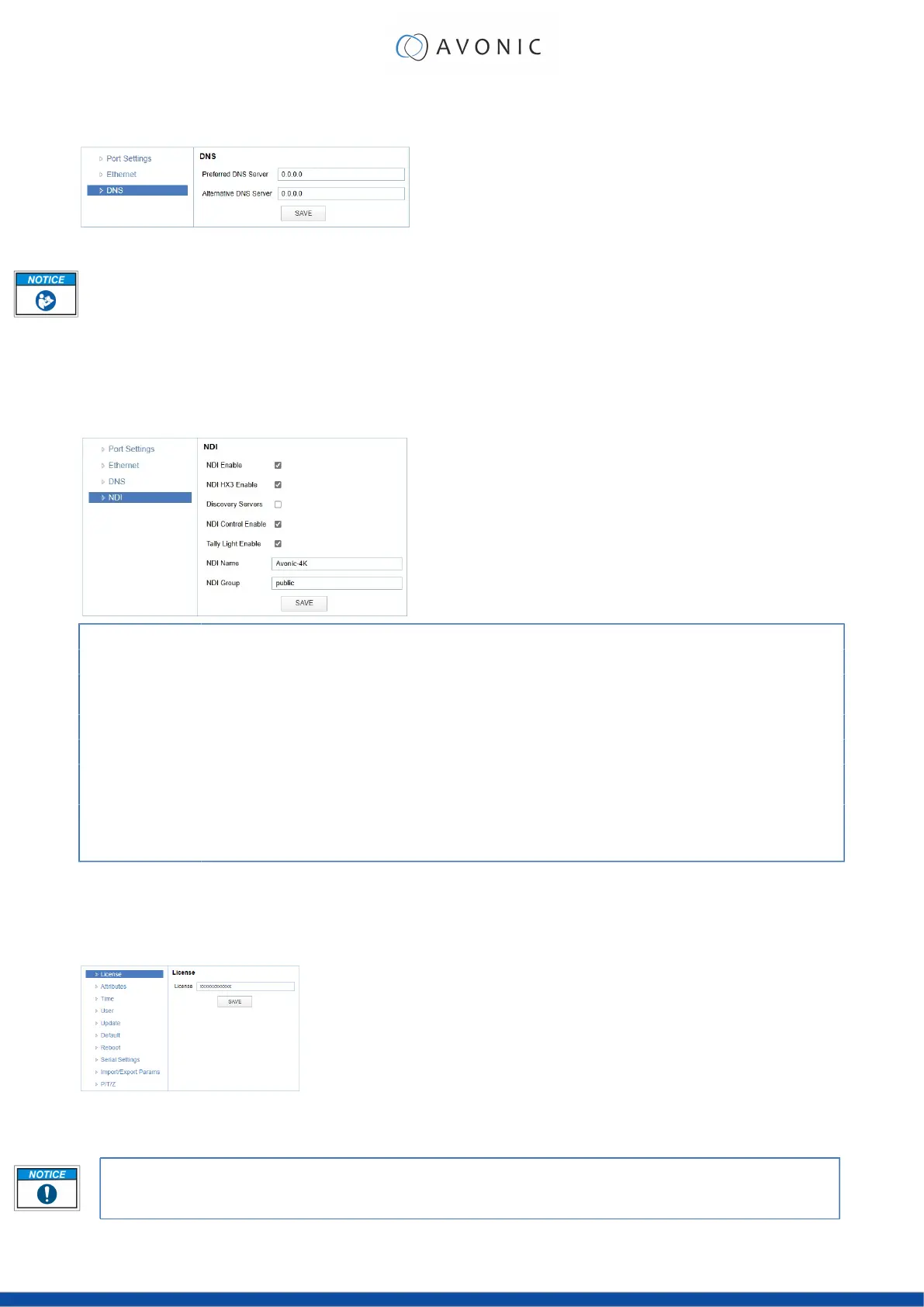 This part concerns the NDI®| HX functionality of your Avonic NDI®| HX camera. With the NDI enabled and NDI