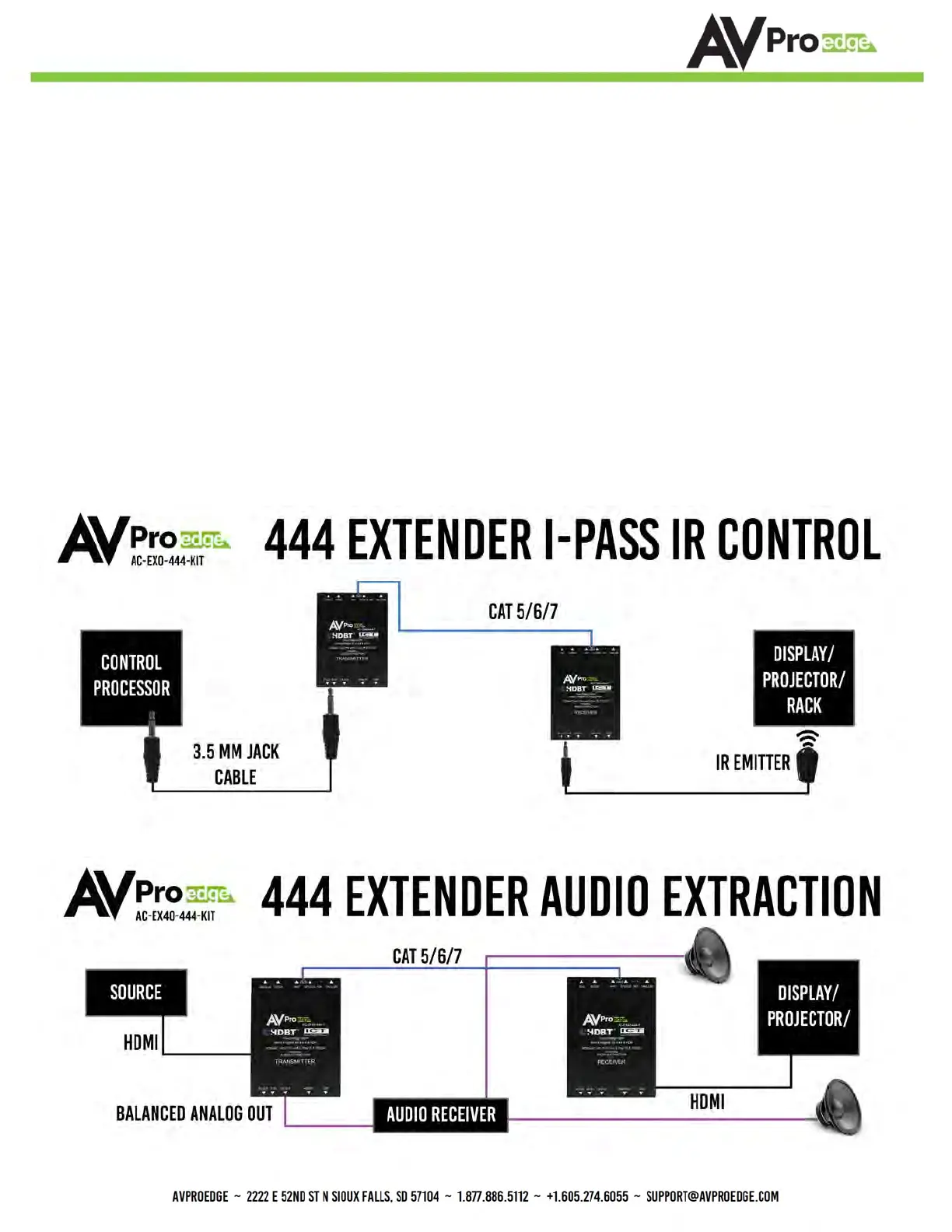 directly into the "IR IN" port on the AC-EX40-444 Transmitter to pass IR signals directly to the remote end. NOTE