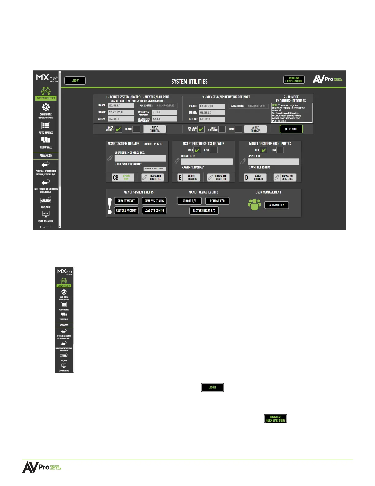 The Mentor home screen features the System Utilities as the default page. This page provides a variety