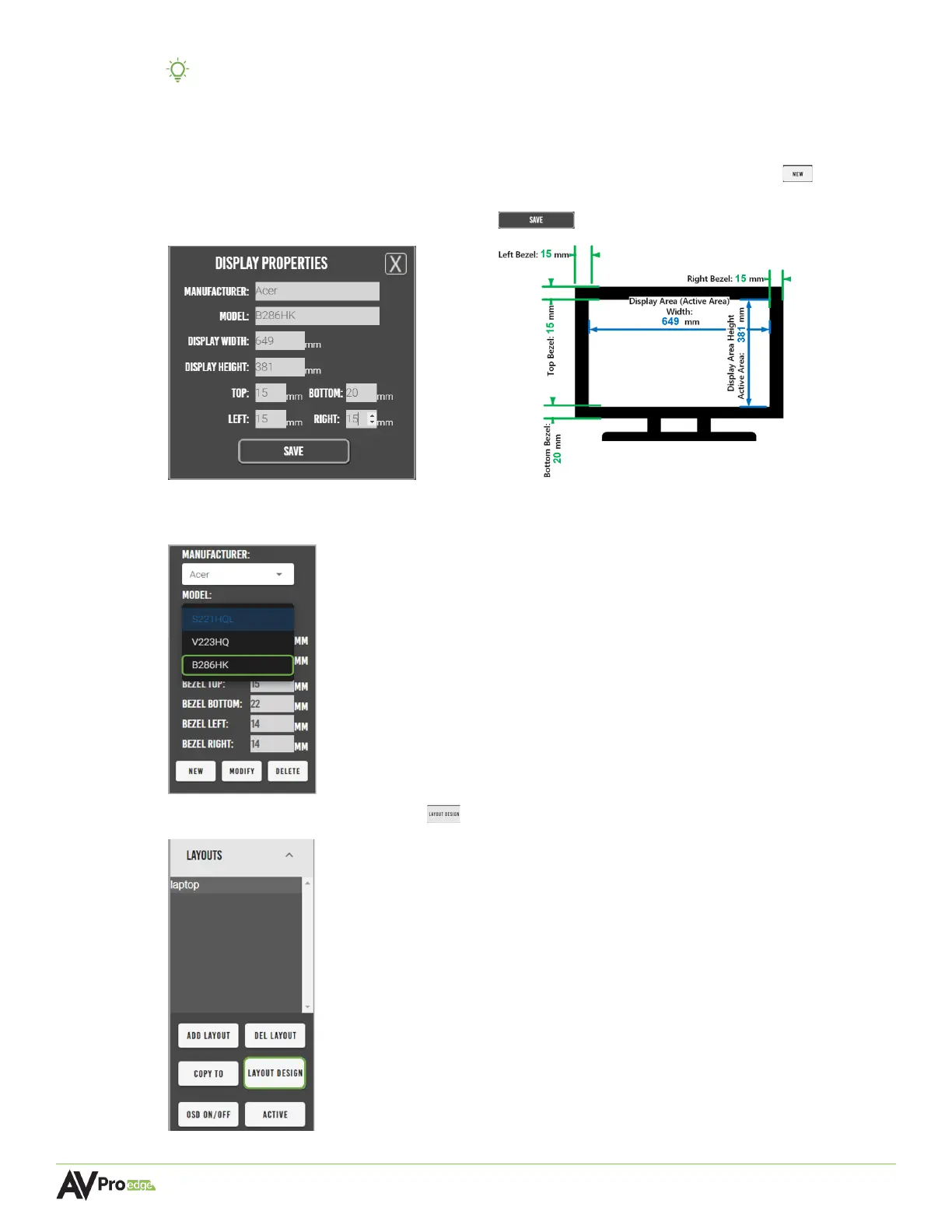 Manufacturer and Model dropdown menu lists and can now be selected for the display(s).