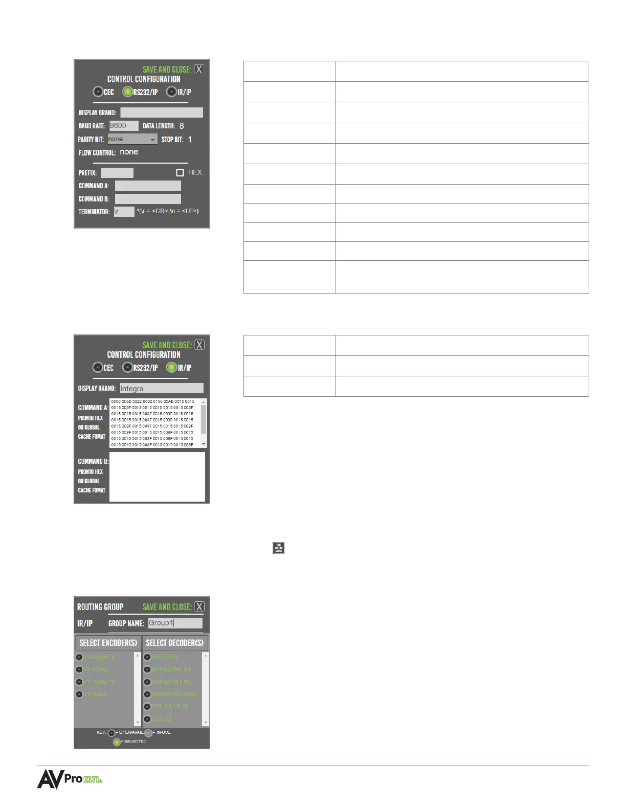 Select the sources and displays here to apply the selected control configurations, then select the x