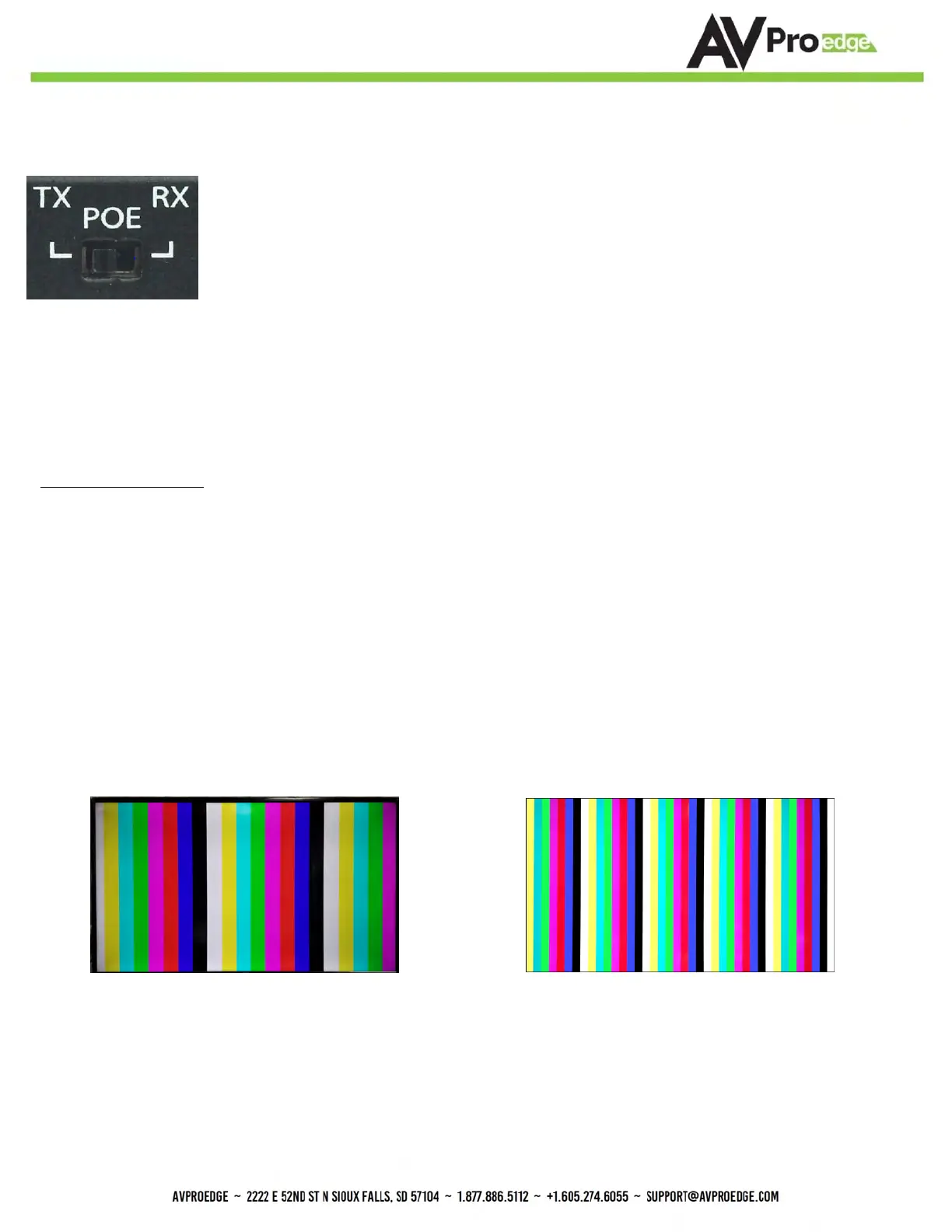 transmitter side, to power cycle the receiver unplug the HDBaseT Category cable. You should see the color bar