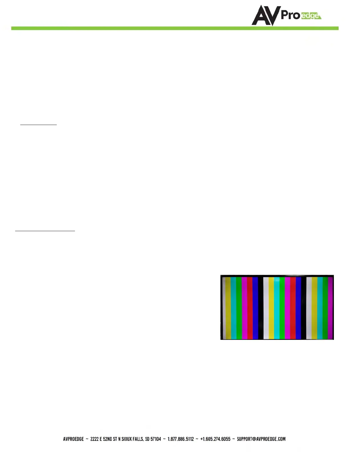 • 1080P --- LED Flashes 1 Time (3 sets of color bars, example to the right)