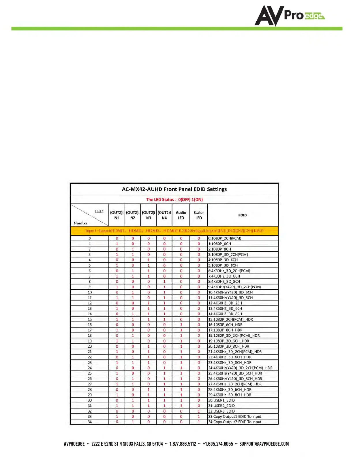 option. Since there is no screen on the device, you will have to rely on the LED's to complete EDID setup. Please