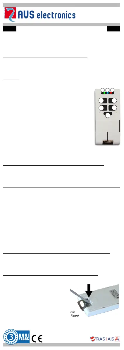 Fernbedienung mit Rolling-Code-Technologie. Sie kann als Schlüsselanhänger
