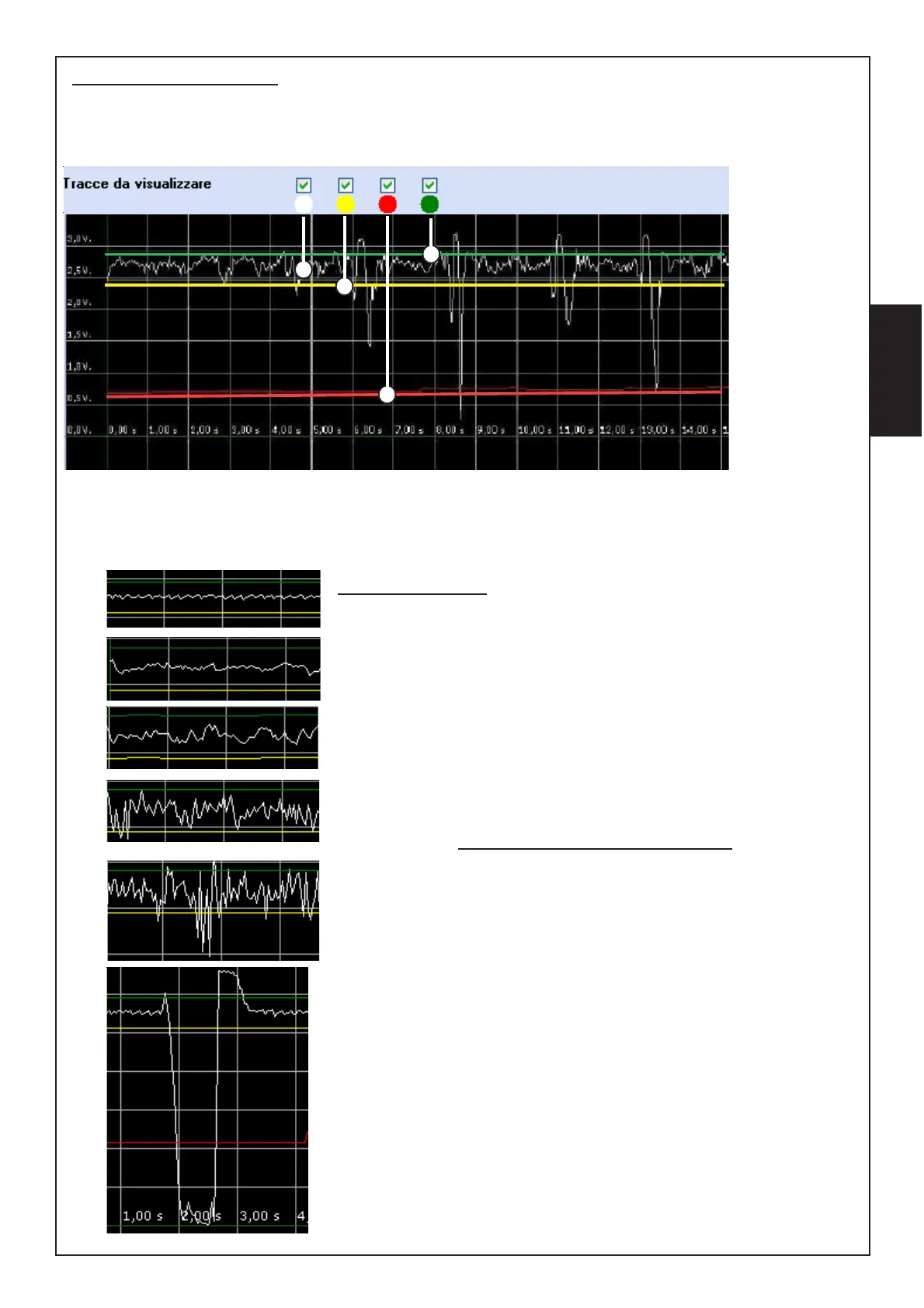 Linea verde/gialla: indica la soglia di segnale valido; i segnali all’interno delle due linee non