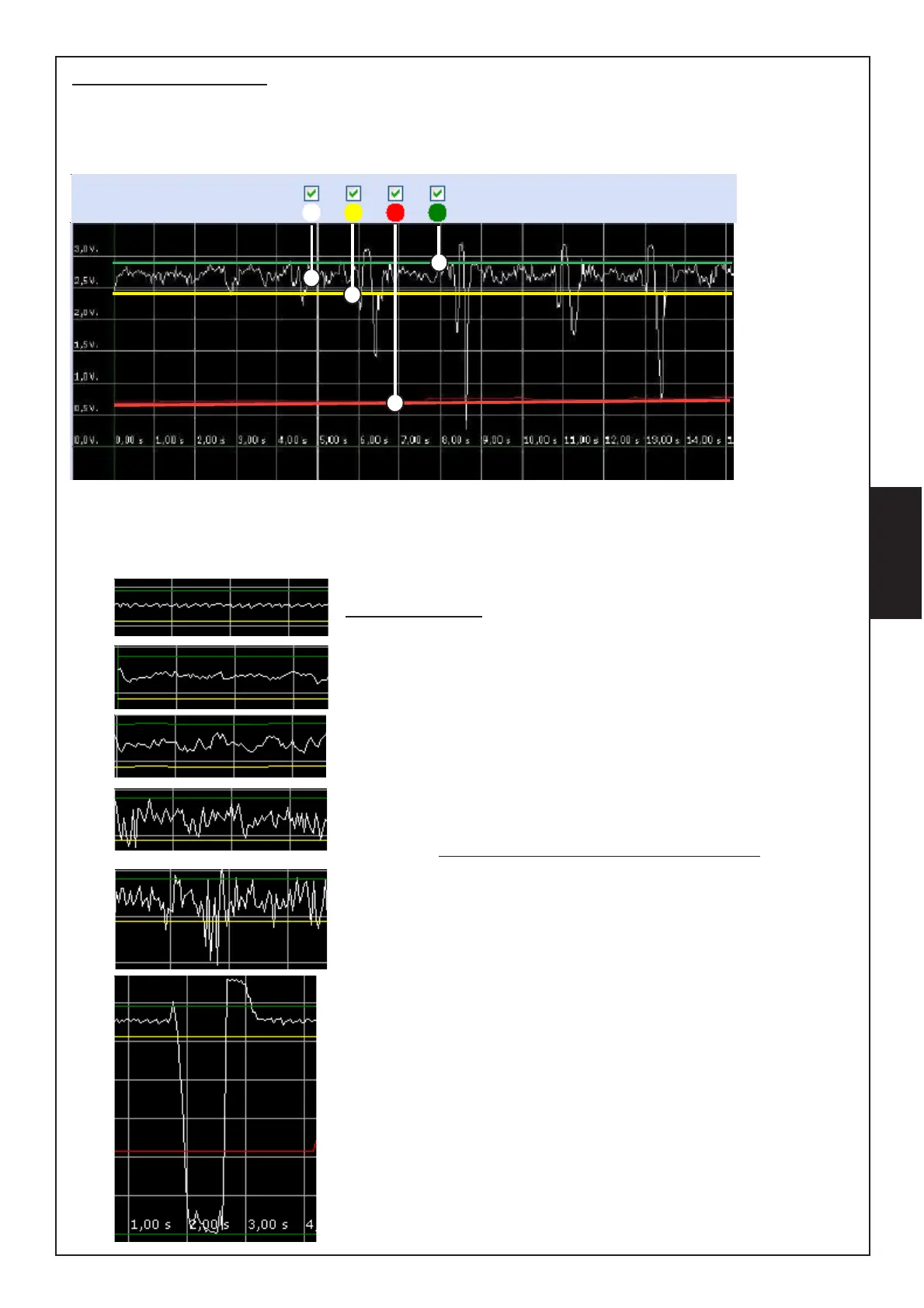 Green/yellow line: it indicates the valid signal threshold; the signals inside the two lines do not