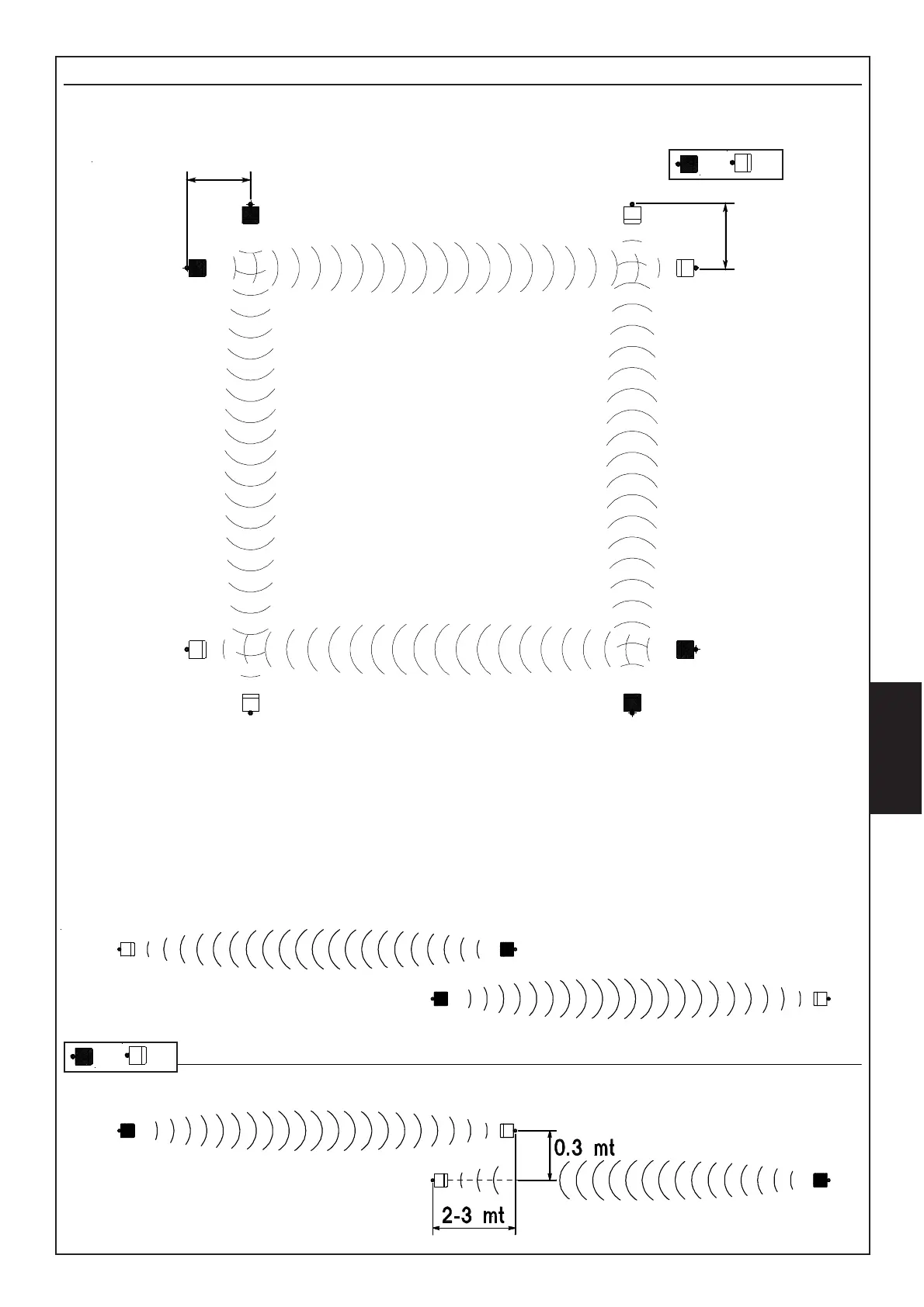 Die unten stehenden Abbildungen zeigen, wie zwei oder mehrere Barrierepaare anzuordnen