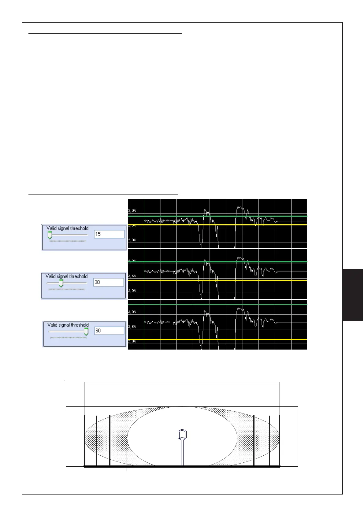 den Erfassungsbereich und die Schwellen für gültiges Signal an.