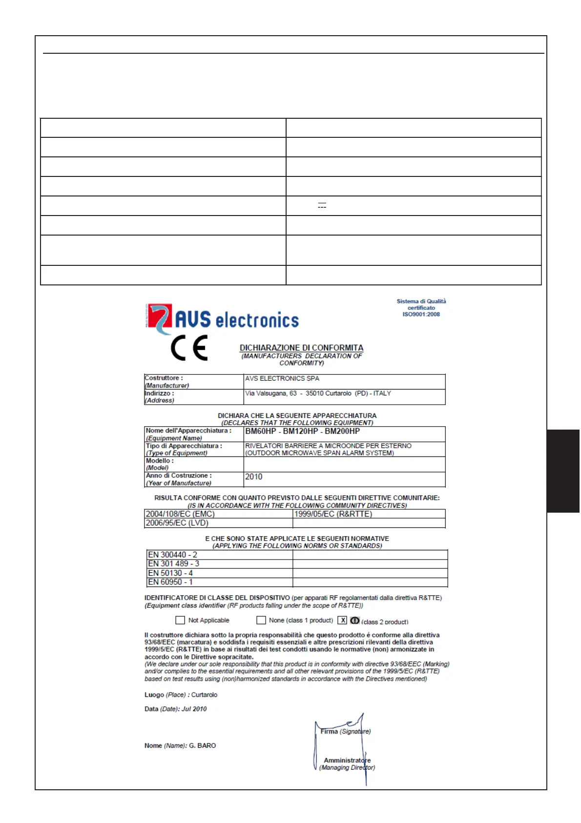 Informationen entsprechend der Richtlinie 1999/5/CEE für Mod. BM_HP