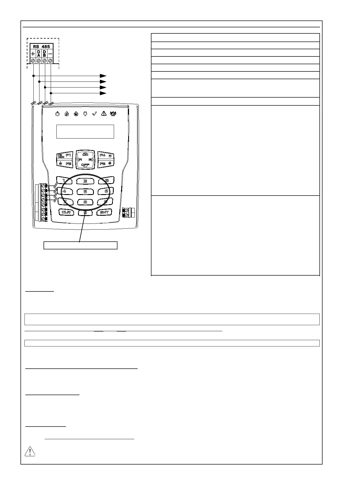 of the keypad, connecting the clamps of serial output RS485 of the control panel