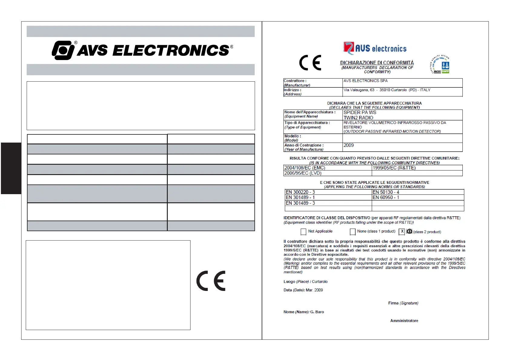 INFORMATION ABOUT CONFORMITY TO DIRECTIVES 1999/5/CE (R&TTE)