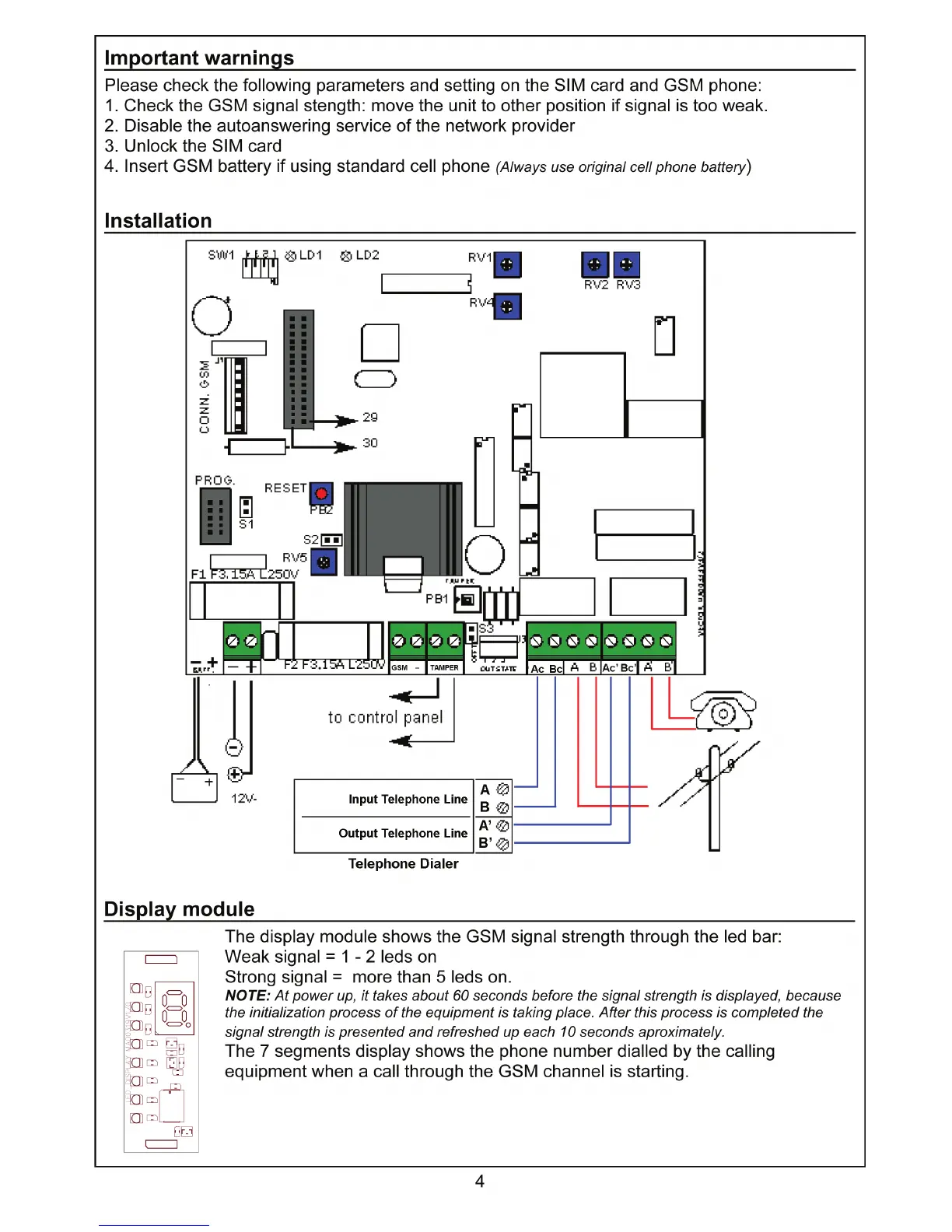 AVS Electronics VECTOR Plus - Important Warnings; Installation; Display Module