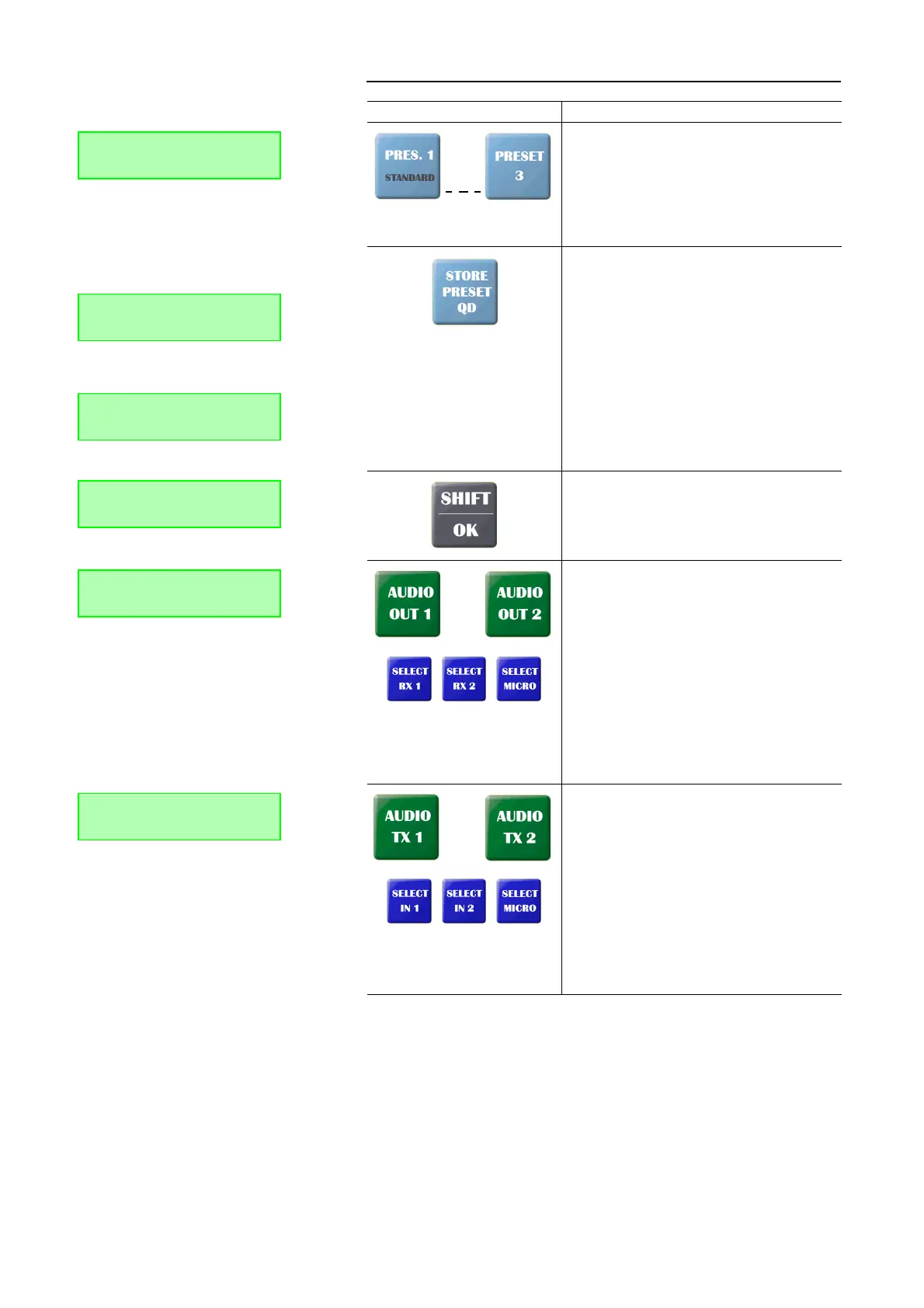 With the Preset 1 ... Preset 3 buttons, predefined Audio