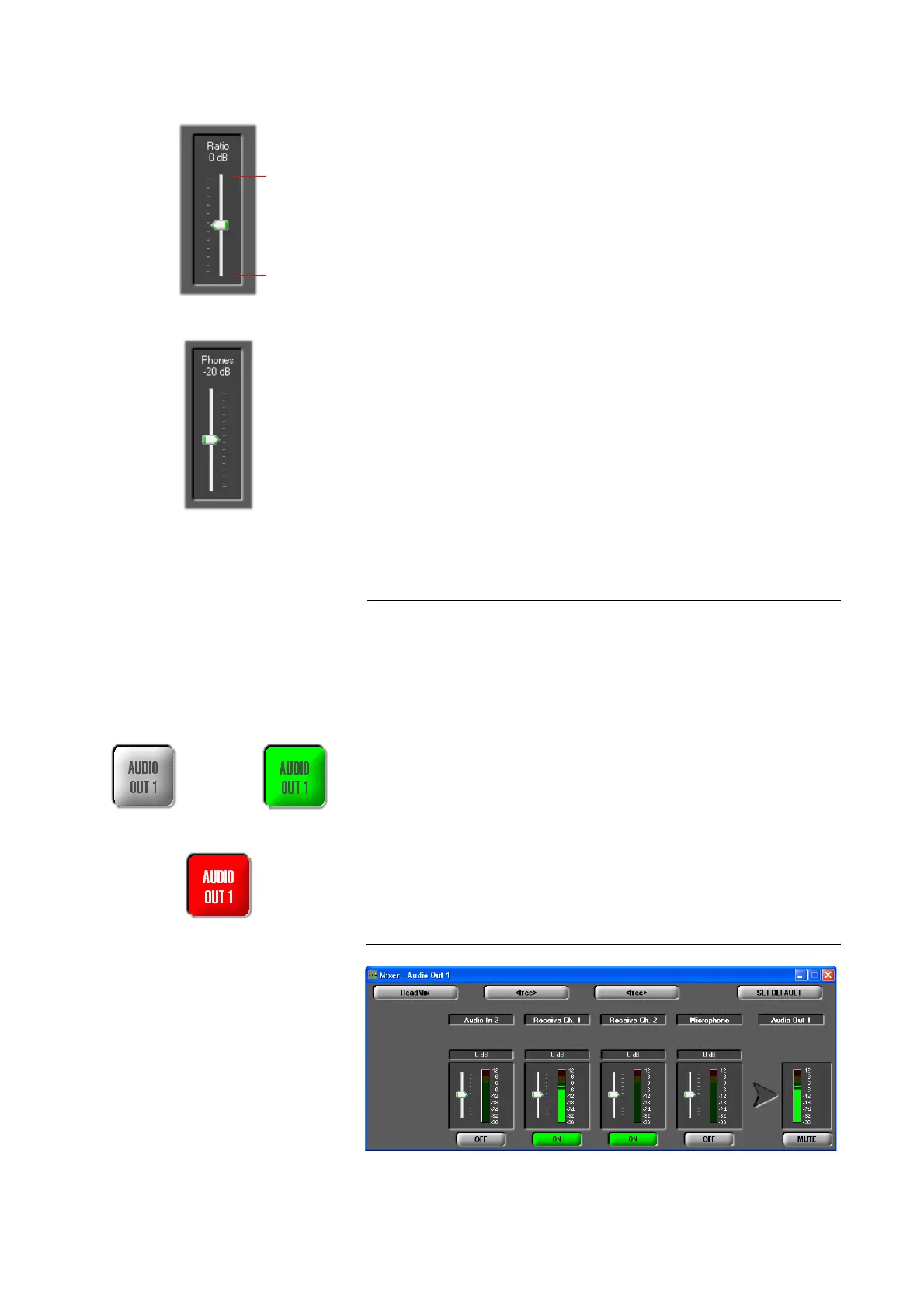 Depending on the configuration of the Audio mixer, the AUDIO OUT button