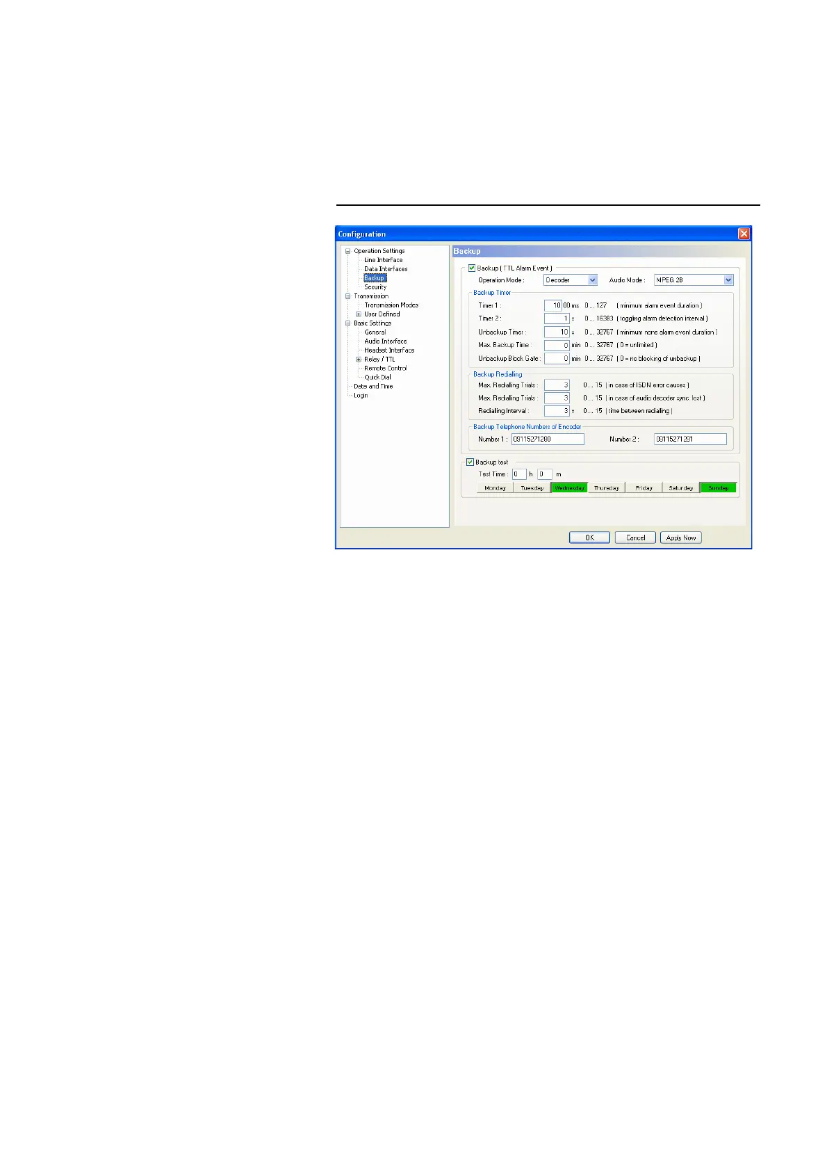 • To activate the backup function , please enable the checkbox Backup (TTL