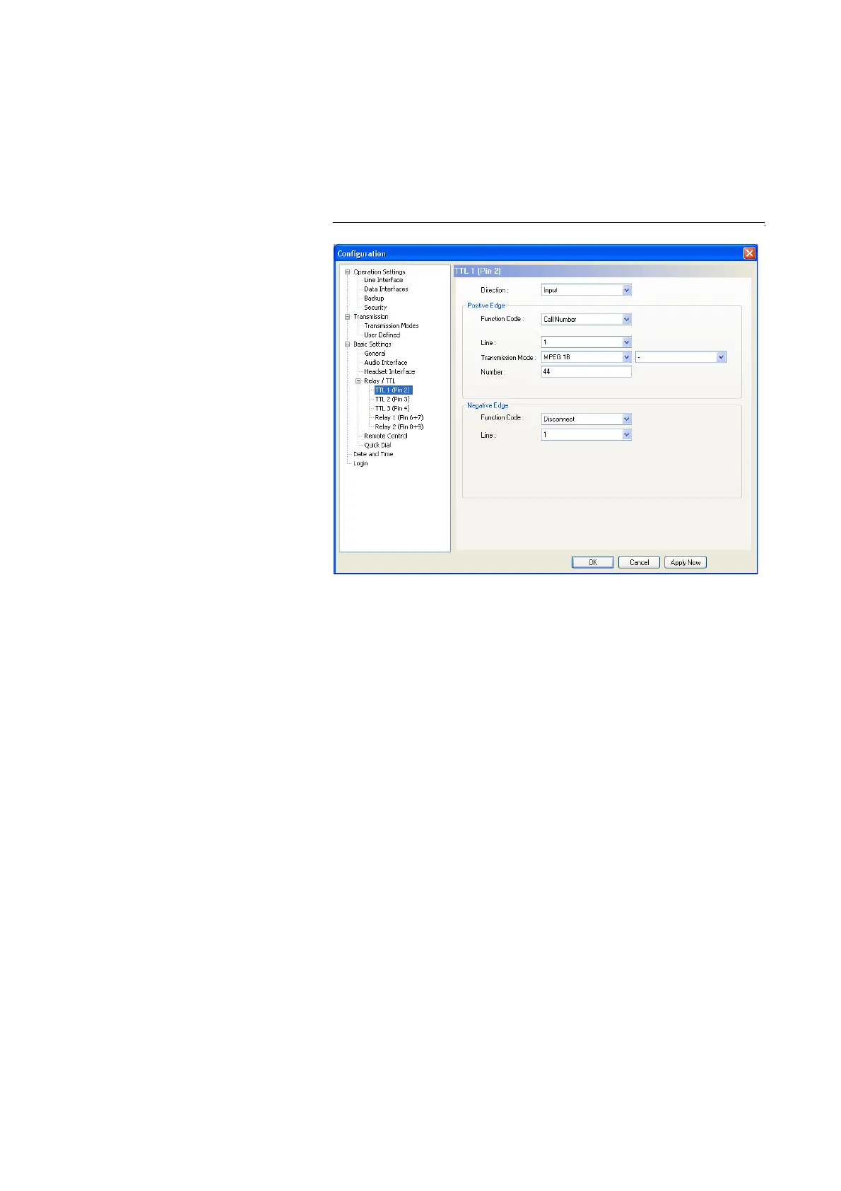 • Positive edge: The event is triggered when the voltage at the TTL Pin can-