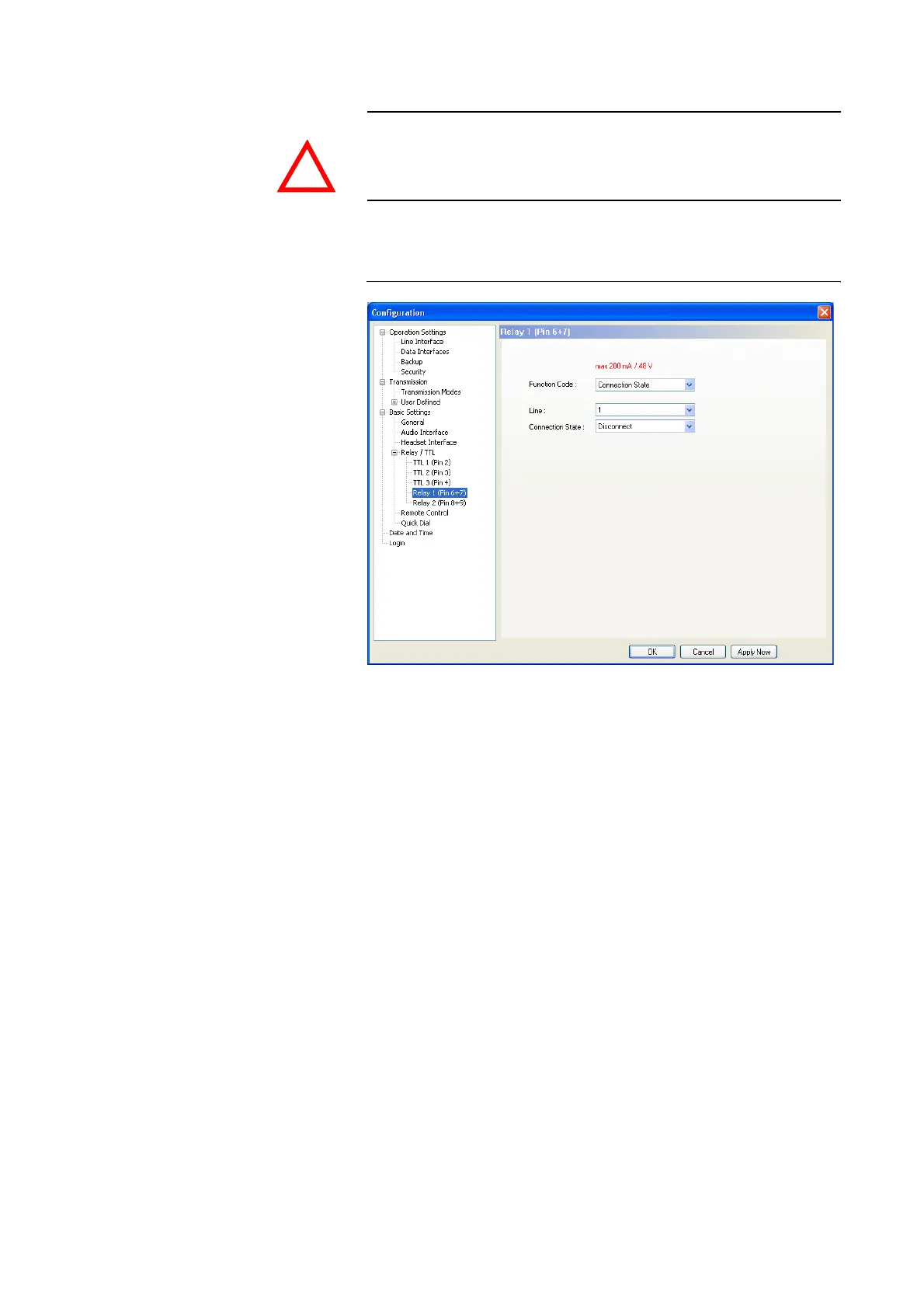 The following description is valid for both configuration windows Relay 1