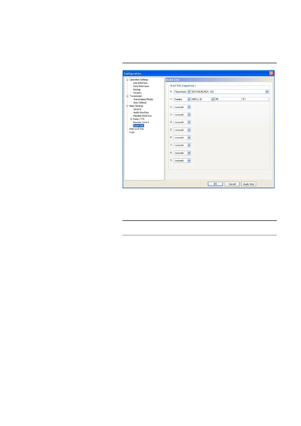 keys 0 ... 9 of the front display. The quick dial keys can be programmed via the
