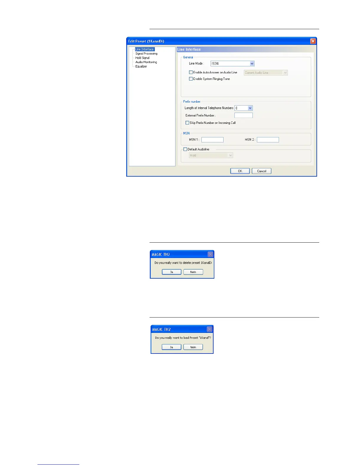 • Via the button Delete the configuration selected from the list is deleted.