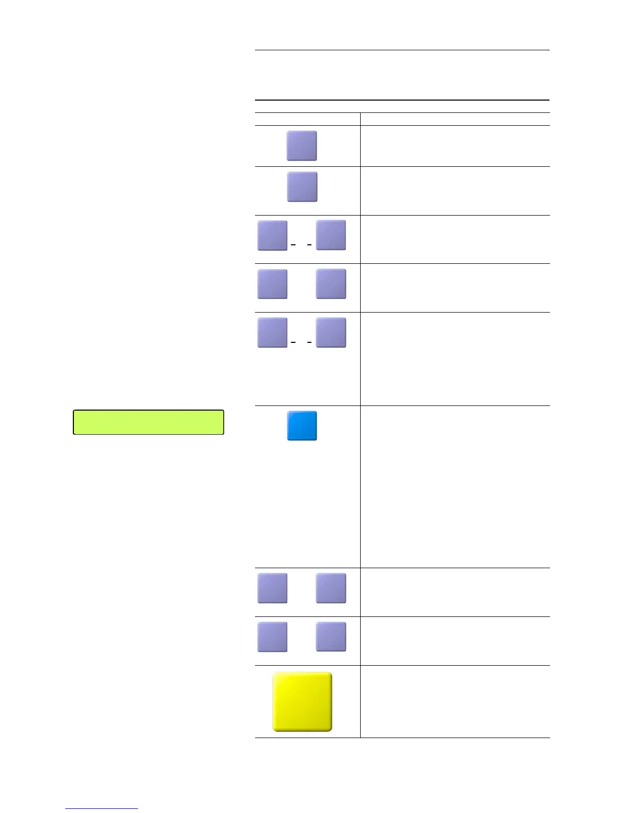 Below you will find the keypad functions listed in table form.