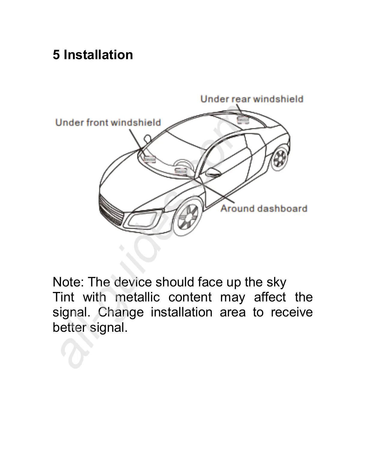 Note: The device should face up the sky