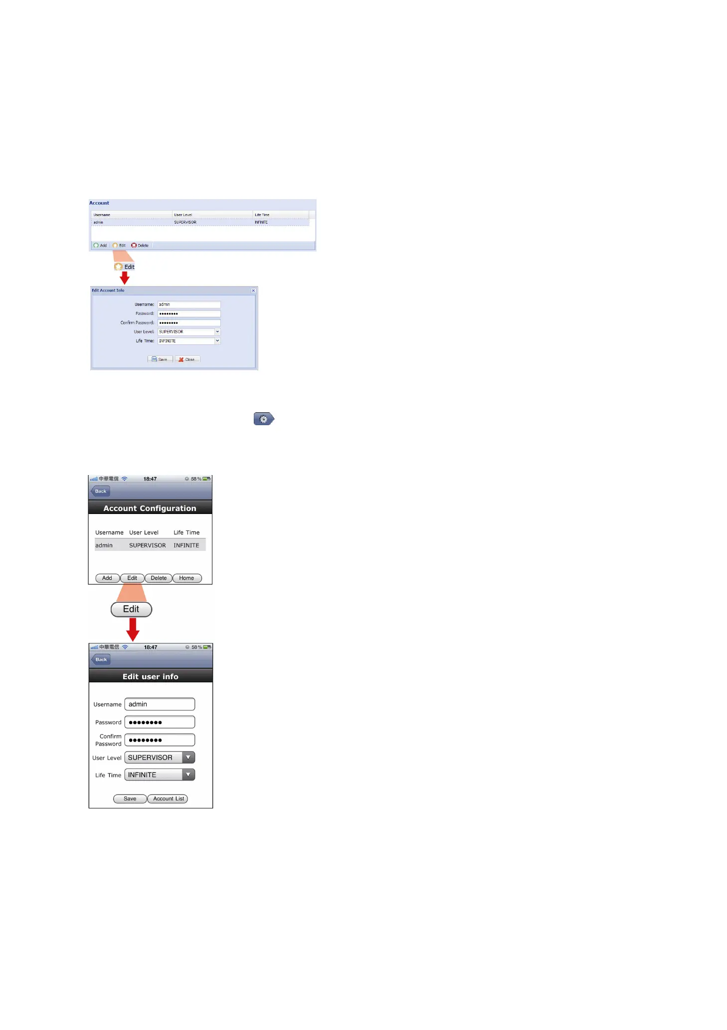 Select the default account “admin”, and click “Edit” to change the default password.