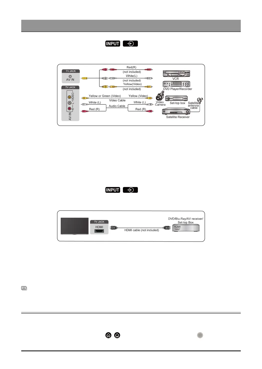 • AV IN port(s) may not be available in some models. Please use other port(s) to connect AV devices.