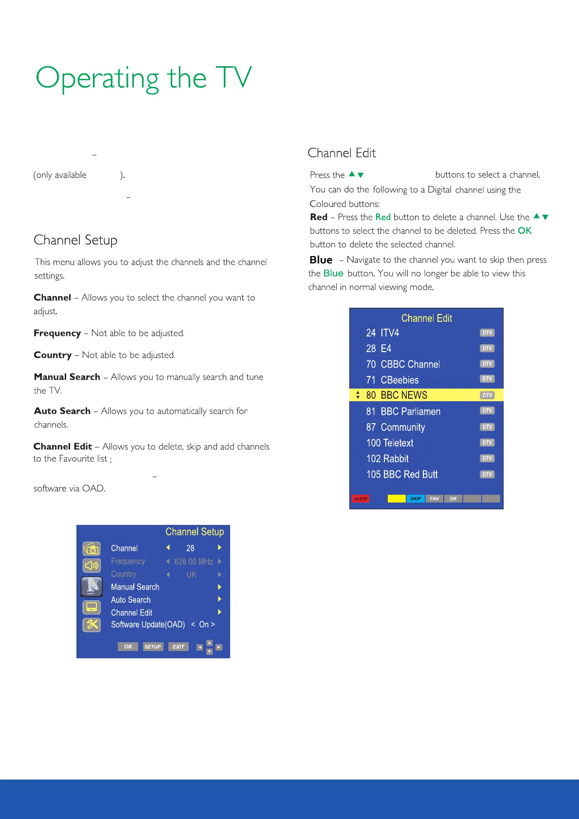 Avtex L168DRS - Channel Edit; AD Switch; Headphone on;off; Channel Setup