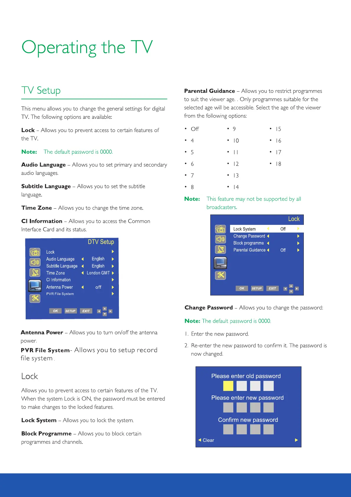 Avtex L168DRS - TV Setup; Parental Guidance; Change Password; Lock