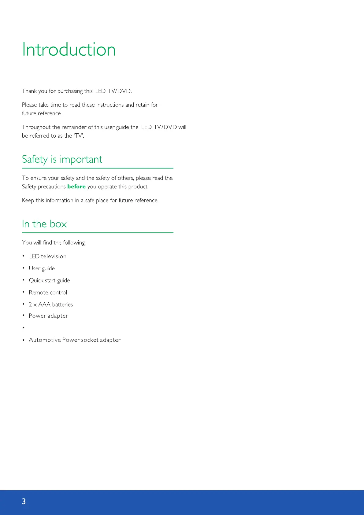 Avtex L168DRS - Introduction; Safety is important; In the box