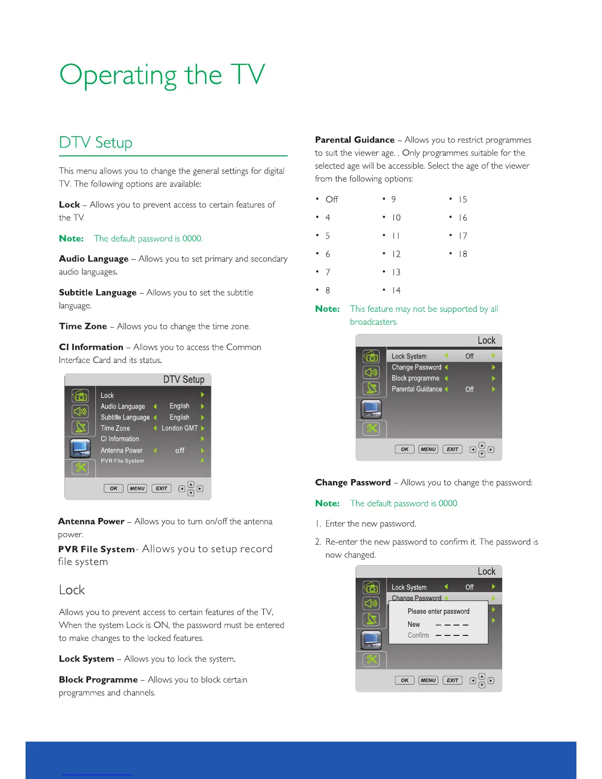 Avtex L185DR - DTV Setup; Lock; Change Password; Lock System