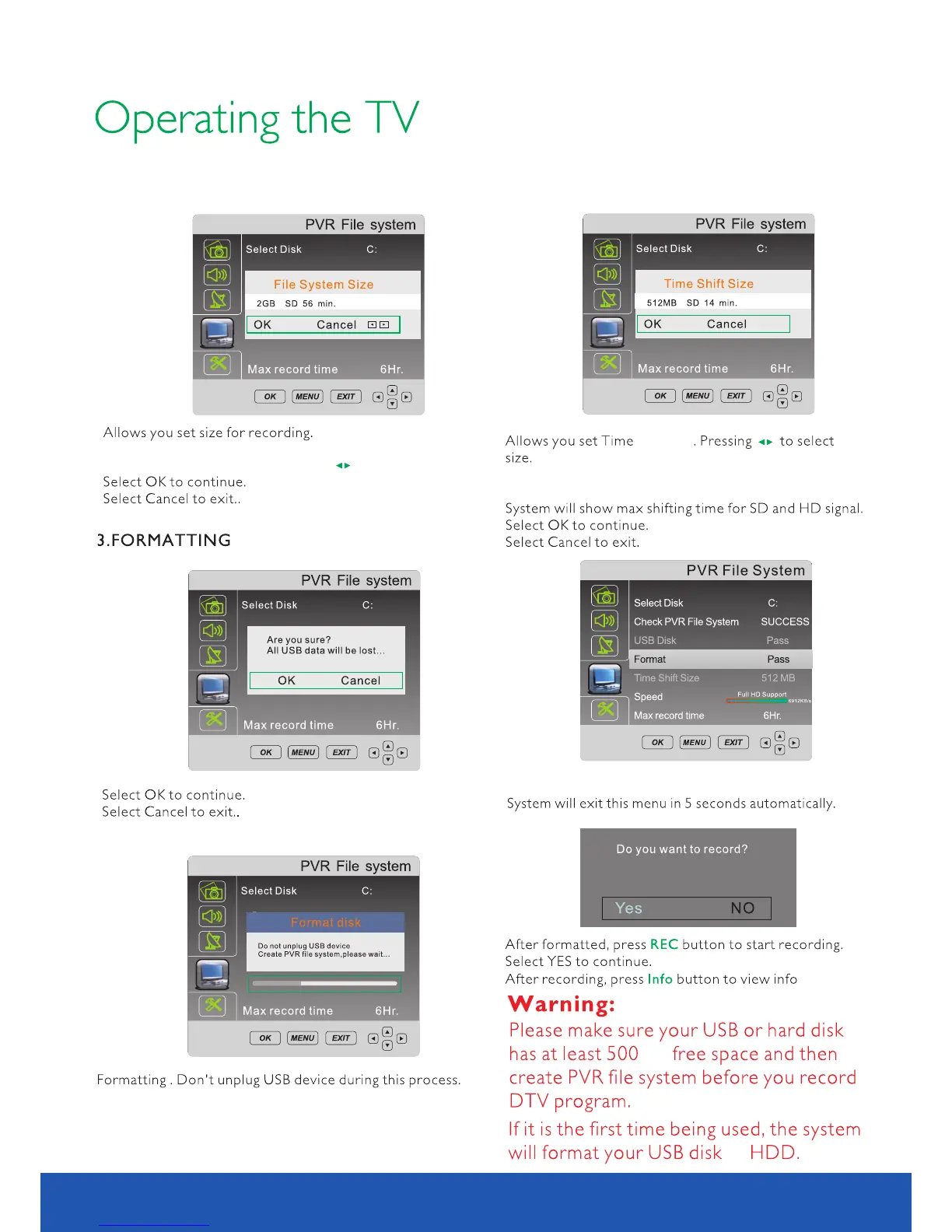 If formatting is successful, the menu above will be displayed.