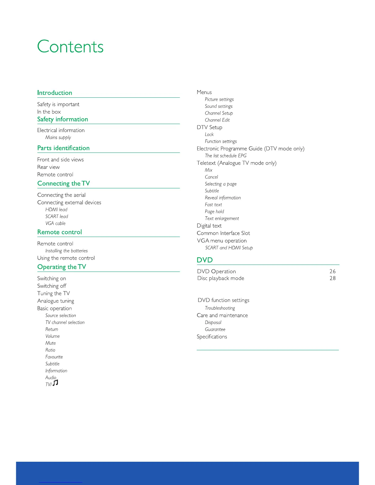 Avtex L185DR - Table of Contents