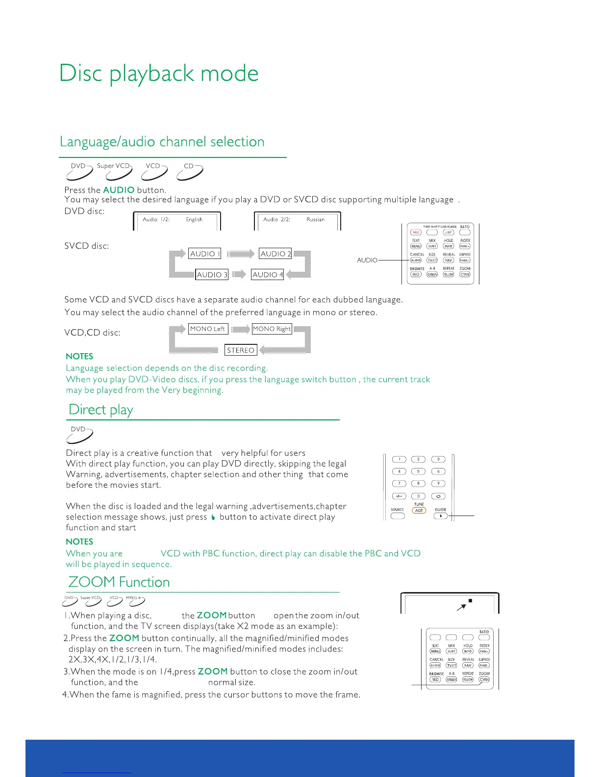 Avtex L185DR - Language;audio channel selection; Direct play; ZOOM Function