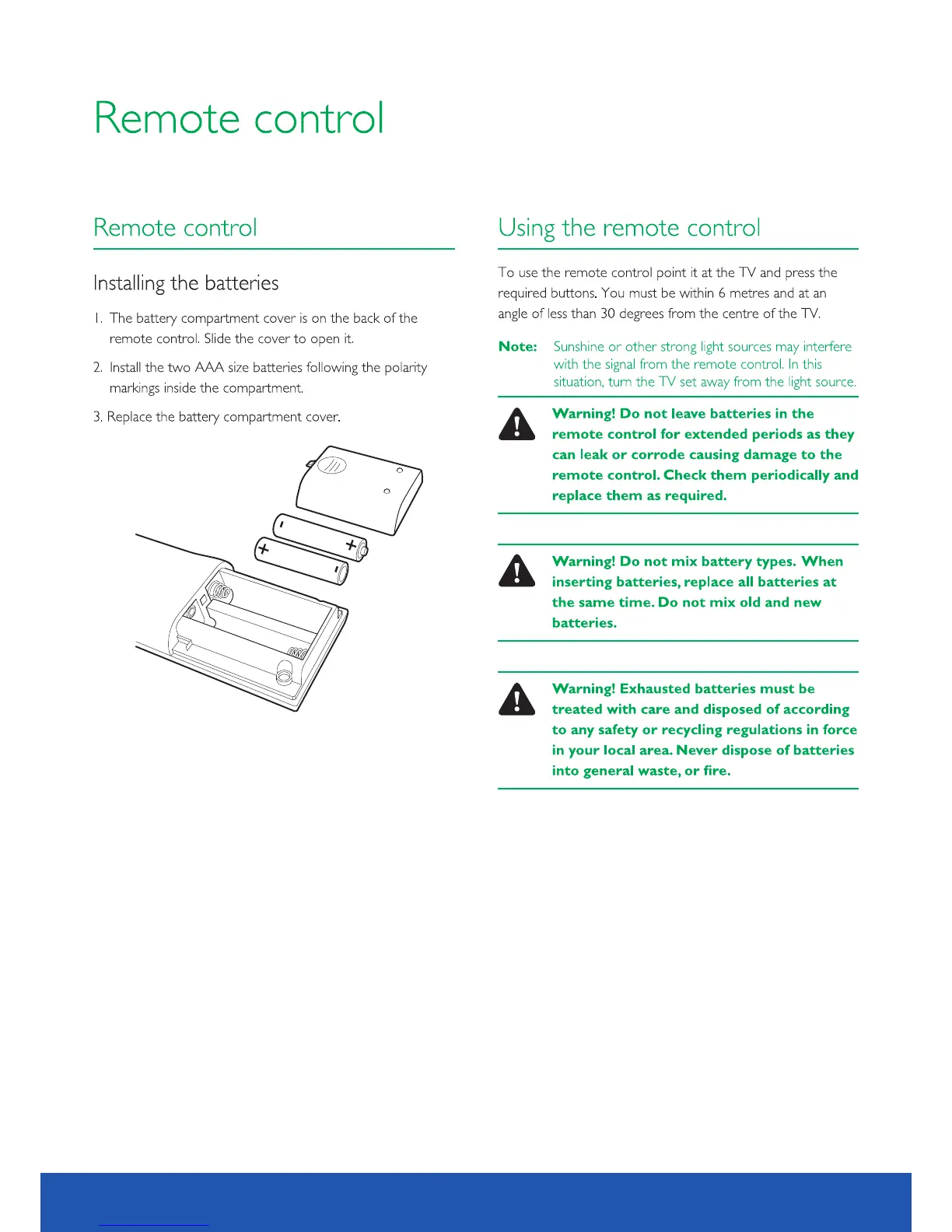 Avtex L185DR - Remote control; Installing the batteries; Using the remote control