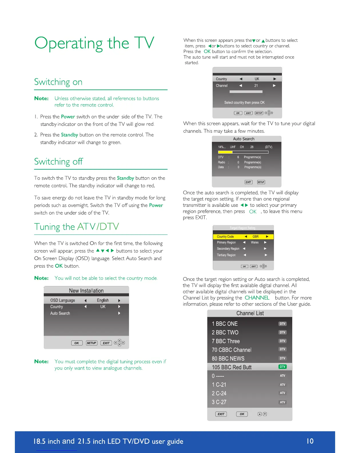 Avtex L185DRS - Operating the TV; Switching on; Tuning the ATV;DTV