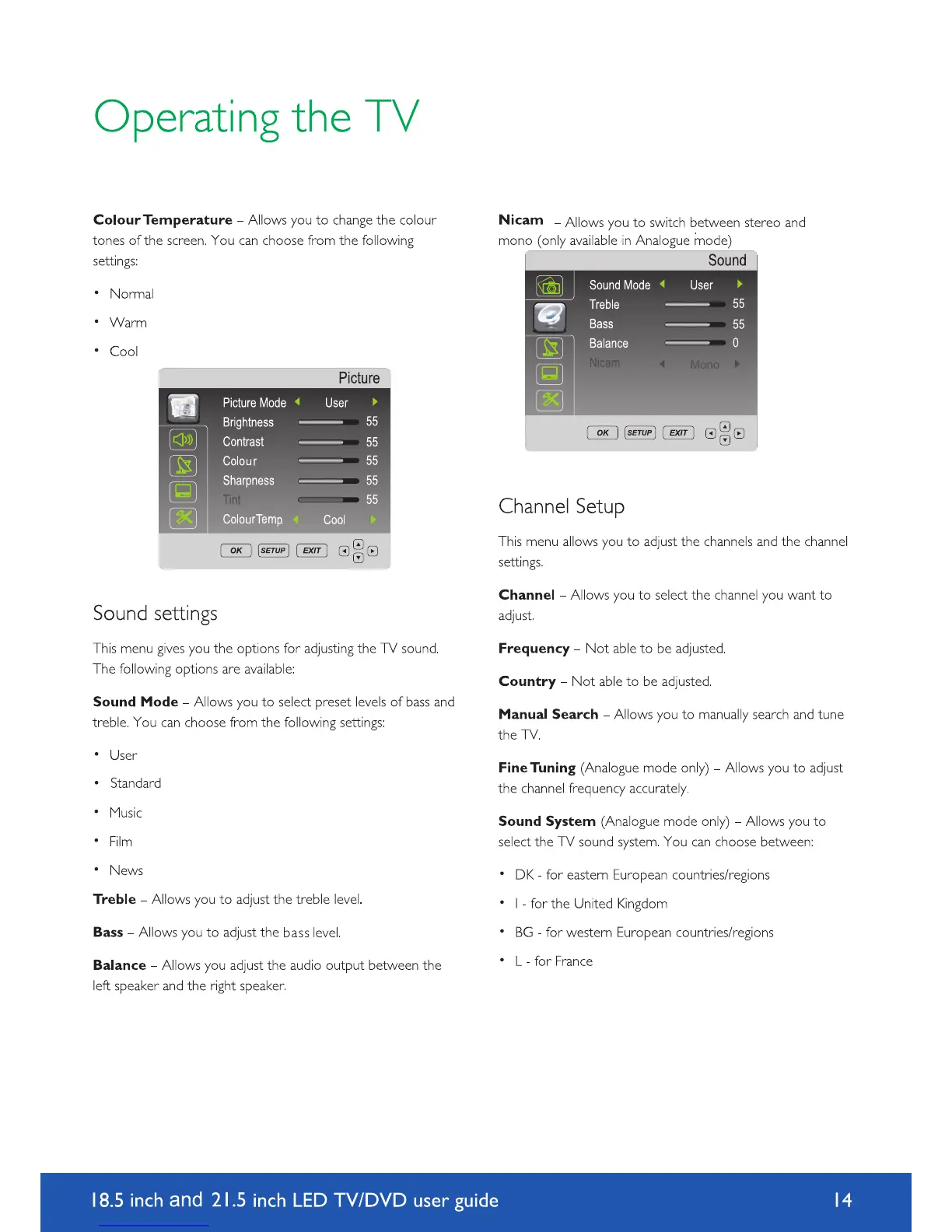 Avtex L185DRS - Sound settings; Channel Setup