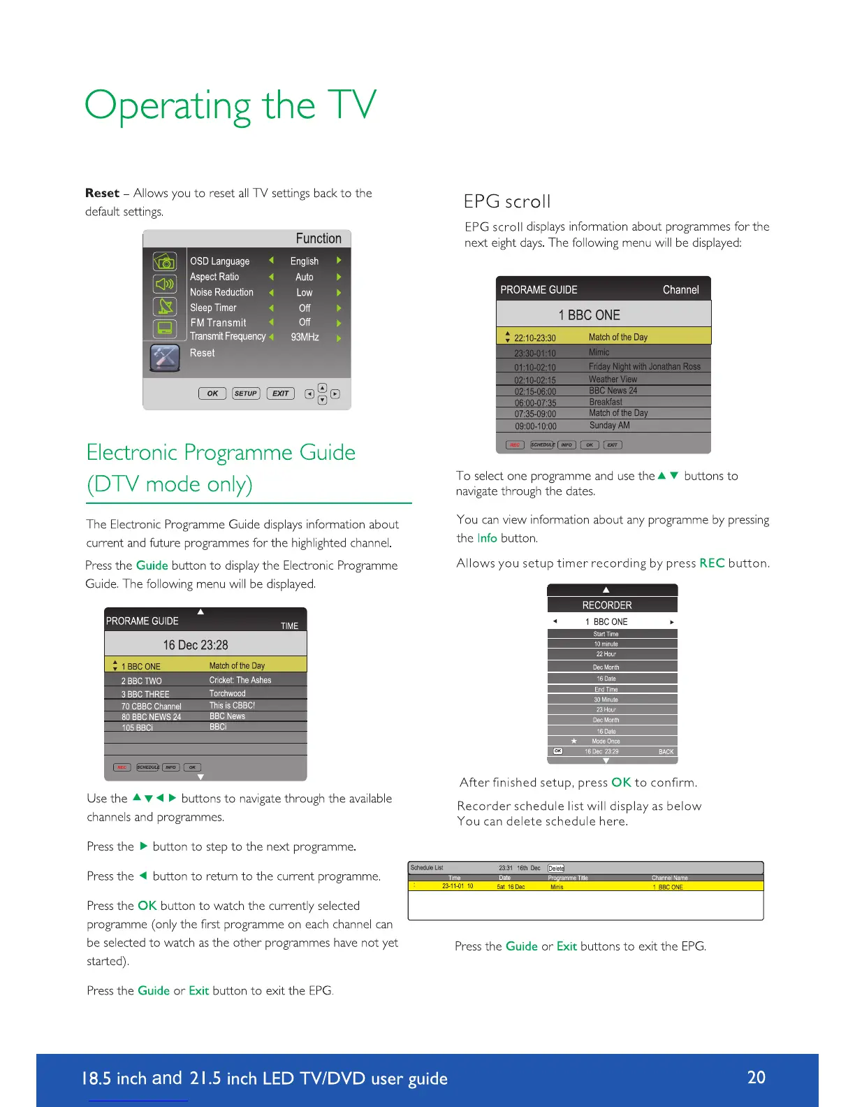 Avtex L185DRS - Reset; Electronic Programme Guide