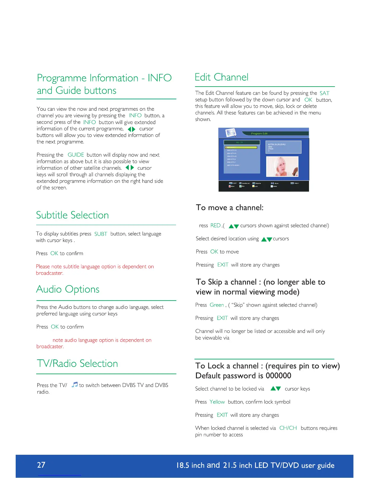 Avtex L185DRS - Edit Channel; To Lock a channel