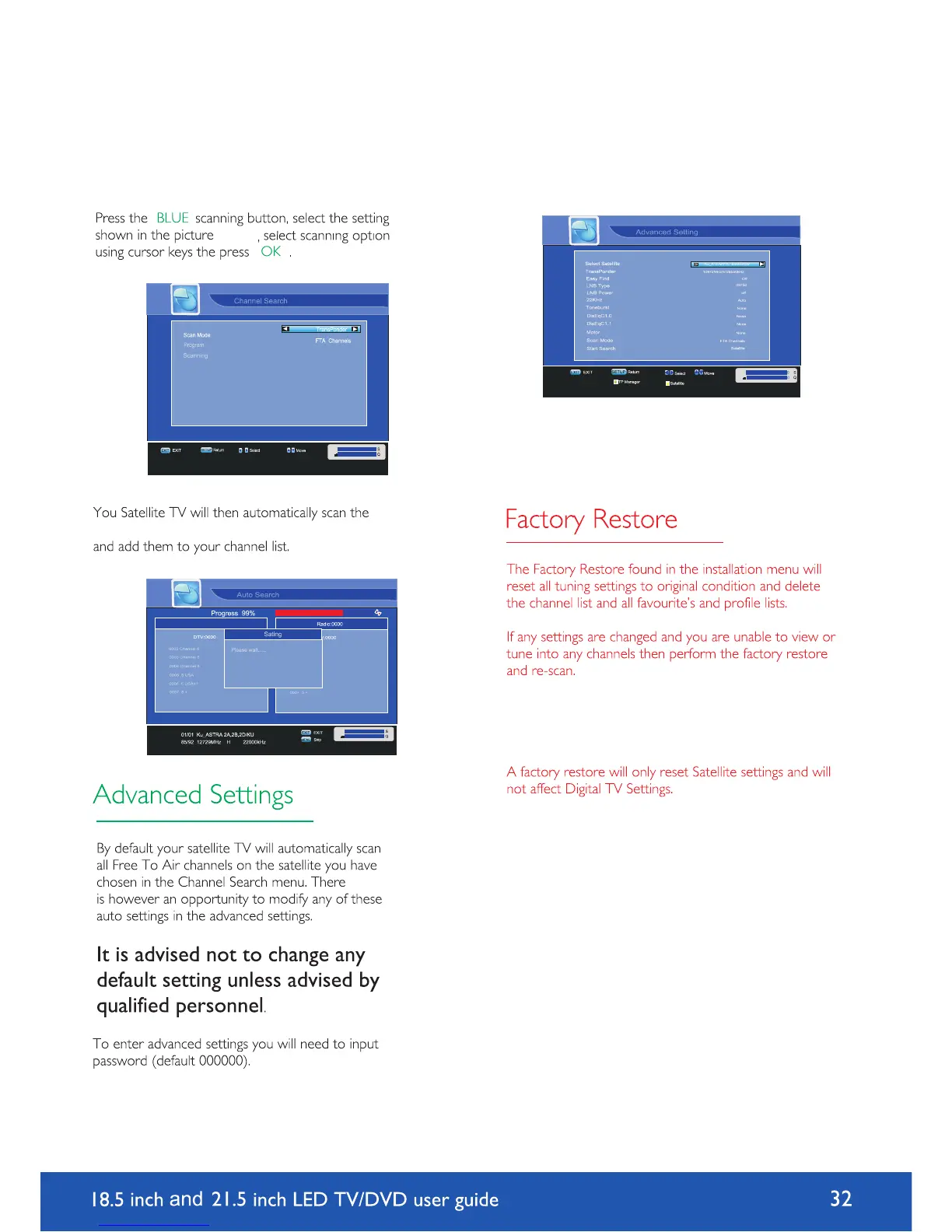 Avtex L185DRS - Advanced Settings; Factory Restore