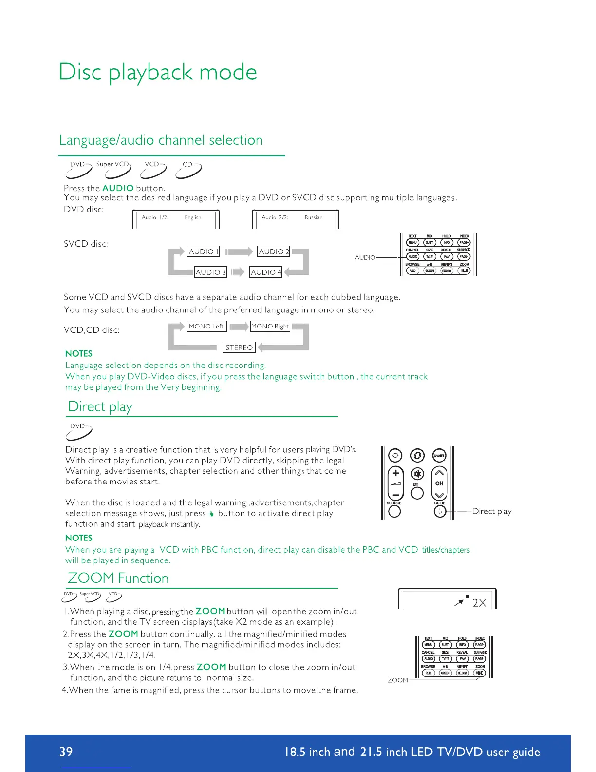 Avtex L185DRS - Language;audio channel selection; Direct play