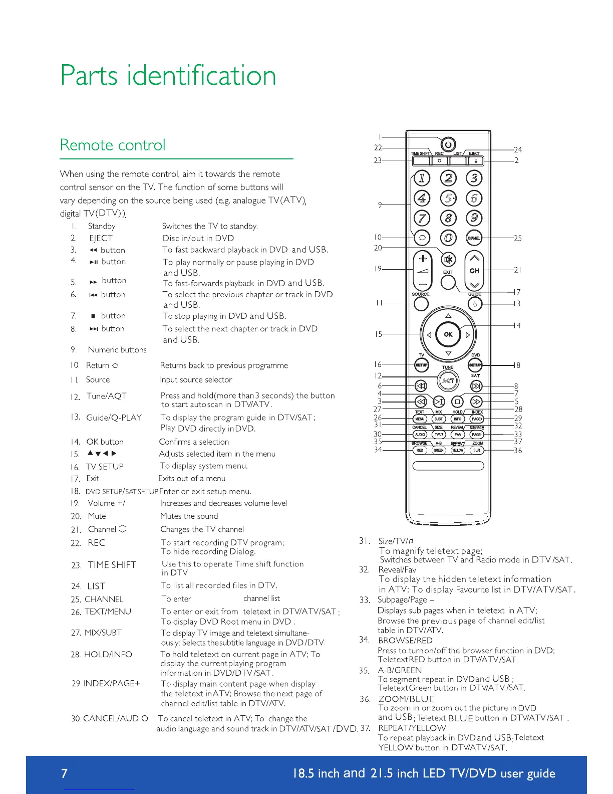 Avtex L185DRS - Remote control overview